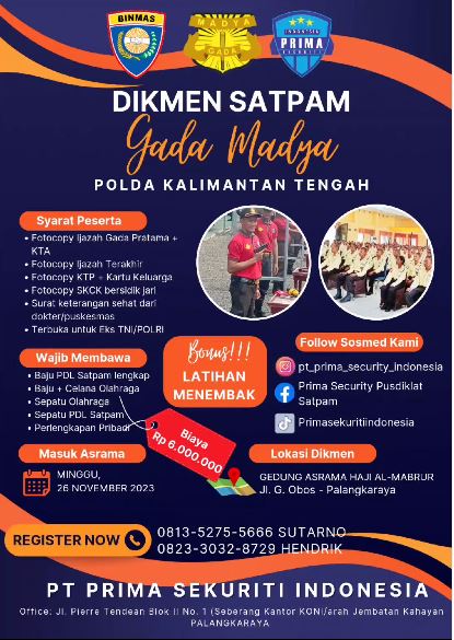 Read MoreDIKLATSAR SATPAM GADA MADYA NOVEMBER 2023 DI PALANGKA RAYA